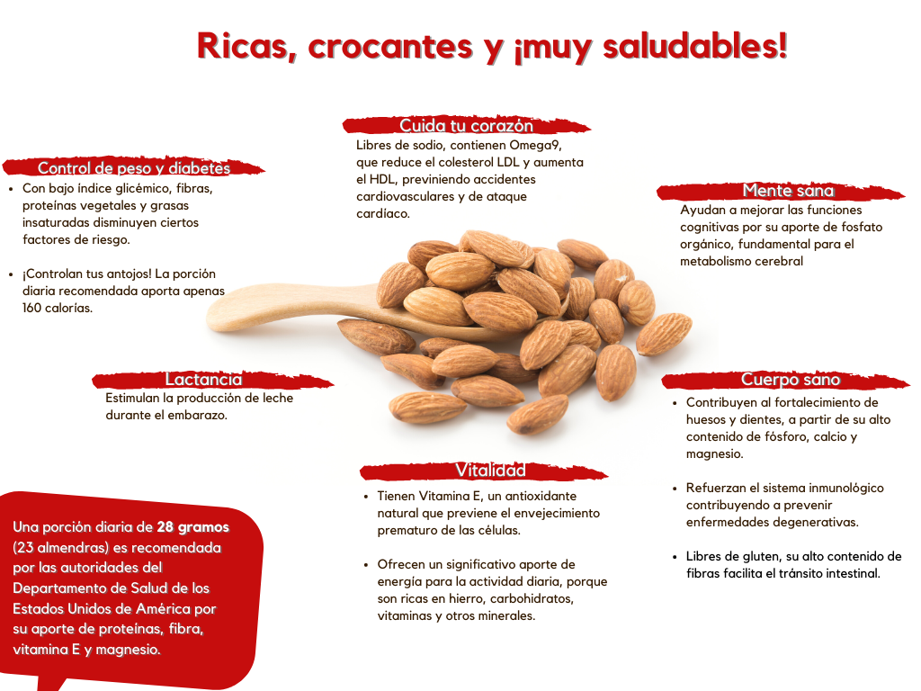 Fuentes: - Almond Board of California (link a web) - Dietary Guidelines for Americans (link a web) - Nutrición y Educación Alimentaria , Ficha N° 54, Frutos Secos: Aliados para tus comidas – Equipo de Nutrición y Educación Alimentaria, Secretaría de Agroindustria (link a web) - Ilustración: Designed by Freepik (link a web)